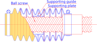 In the case there is possibility of sag at around middle position of the stroke, we install supporting guides as the following figure.